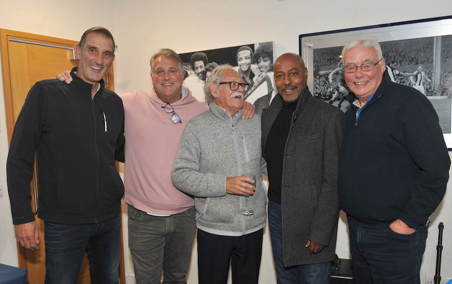 However, there was a lot to smile about in the Regis Suite as legendary goal-keeper Russell Hoult and his pals, were joined in the Regis Suite 1968 Cup Final Wembley hero Doug Fraser, former player manager Brian Talbot, Andy Johnson on his way up to the radio commentary gantry, and Association President Brendon Batson OBE and wife Pam. Also a great opportunity to ‘snap’ Doug with Tony Brown, when the ‘Bomber’ put his head around the Regis Suite door!